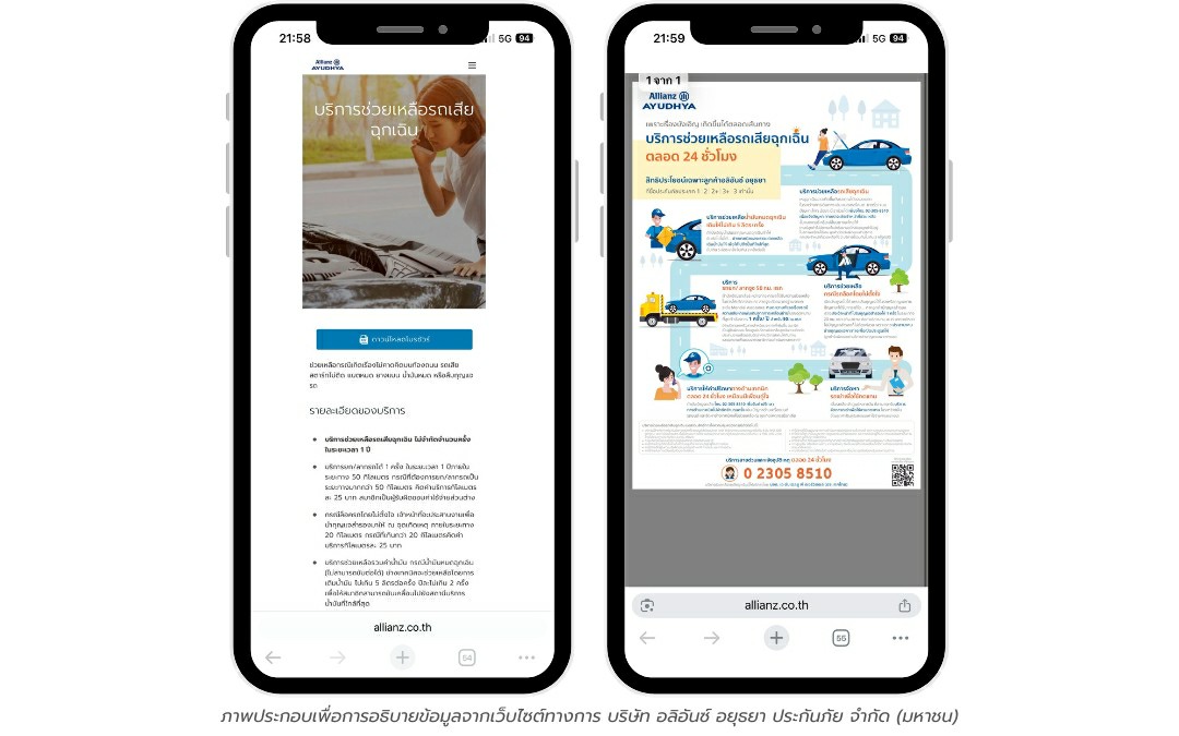 ♦ บริษัท อลิอันซ์ อยุธยา ประกันภัย จำกัด (มหาชน) จะมีบริการค่ารถยก รถลากจูงสำหรับลูกค้าที่ทำประกันรถยนต์ ประเภท 1, 2, 3, และ 5 แบบสองพลัส (2+), สามพลัส (3+) เท่านั้น