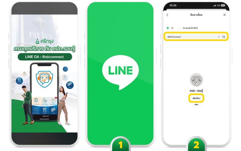 1.เปิดแอปไลน์ ค้นหา LINE ID: @OICConnect