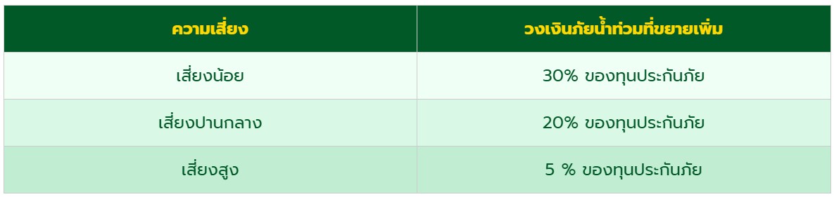 ตารางแสดงความเสี่ยงภัยน้ำท่วมและวงเงินภัยน้ำท่วมที่ขยายเพิ่มเติม